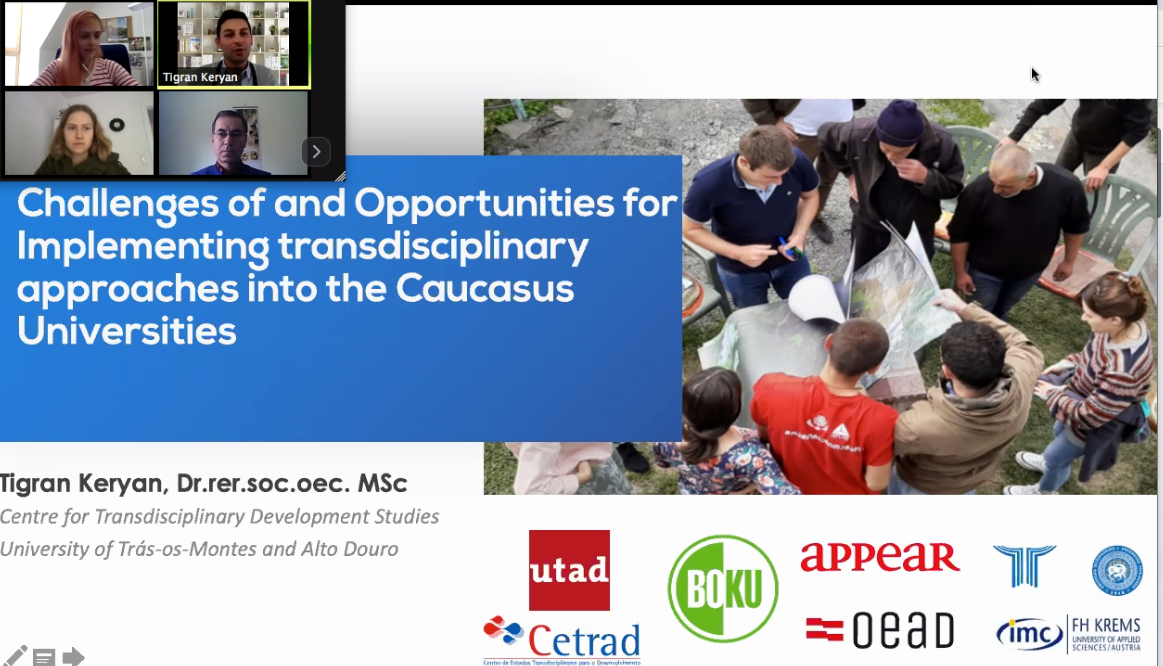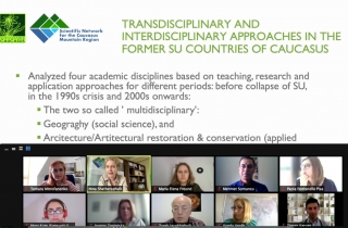 Joanna Zawiejska, Chair of the Science for the Carpathians (S4C) network, Institute of Geography, Pedagogical University, Kraków, Poland, and Nina Shatberashvili, Executive Director, Sustainable Caucasus, Coordination Unit of the Scientific Network for the Caucasus Mountain region (SNC-mt) made inputs about Carpathian and Caucasus scientific networks and regional and historical context with respect to the Caucasus and Carpathian universities collaborating with non-academic actors, and universities contributing to policy and practice. Inputs on the integration of Transdisciplinary Approaches in the Caucasus region was provided by Tigran Keryan, a postdoc researcher in the Centre for Transdisciplinary Development Studies at the University of Trás-os-Montes and Alto Douro, Portugal.