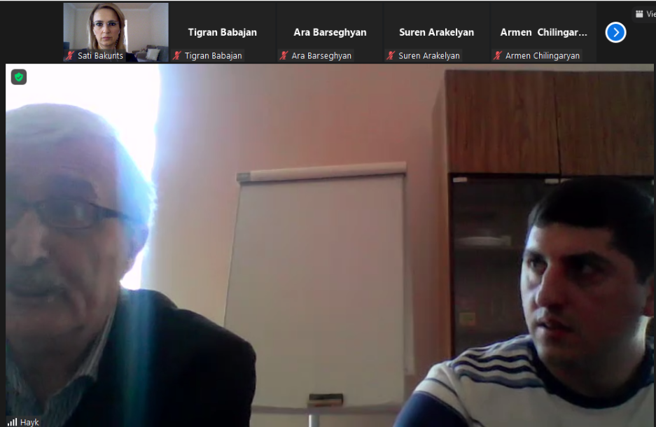 The meeting was attended by the representatives and experts from Caucasus Network for Sustainable Development (Sustainable Caucasus), UNDP, “GeoRisk” Scientific Research Company, National Platform of Disaster Risk Reduction (ARNAP), Yerevan State University, Armenian State University of Economics, Armenian State Pedagogical University, Crisis Management State Academy of MES, Institute of Botany after Takhtajyan of NAS RA, Educational and Ecological NGO, “Khazer” ecological and cultural NGO, Aarhus Center, etc.